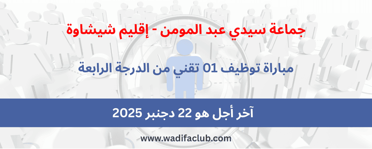 تُعلن جماعة سيدي عبد المومن عن تنظيم مباراة لتوظيف تقني من الدرجة الرابعة، وذلك يوم الأحد 28 دجنبر 2025 على الساعة التاسعة (09) صباحاً. سيُجرى هذا الاختبار بمقر الثانوية الإعدادية المنفلوطي الكائن بمركز جماعة سيدي عبد المومن.
