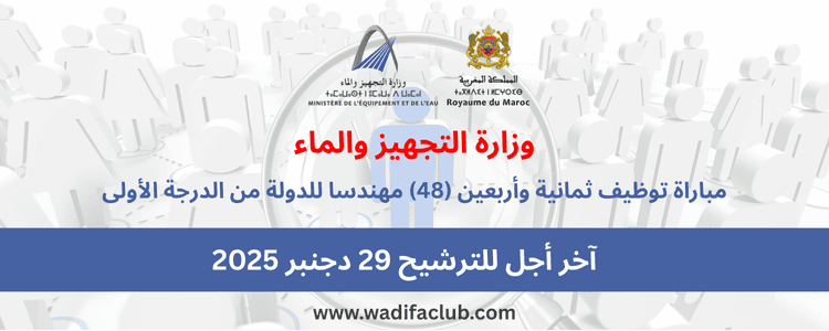 مباراة توظيف ثمانية وأربعين (48) مهندسا للدولة من الدرجة الأولى - وزارة التجهيز والماء